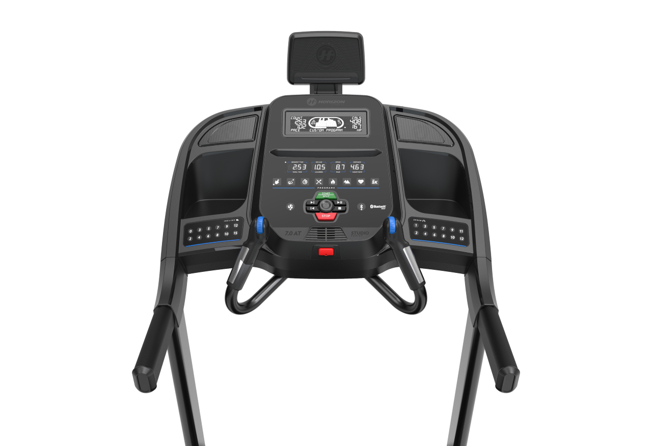 - Quickly shift speed and incline with one-touch keys, quick-rotating dial and handle bar controls