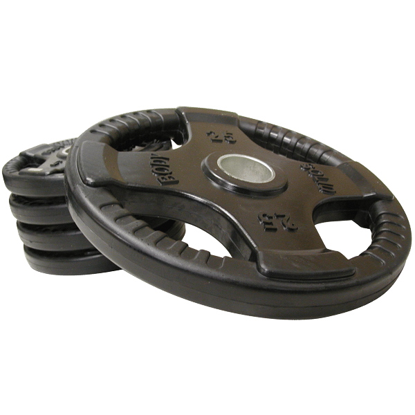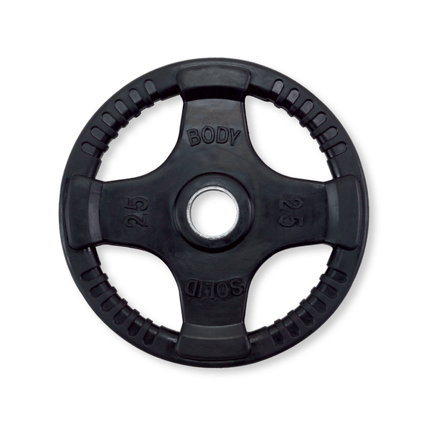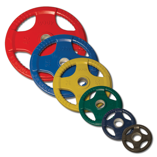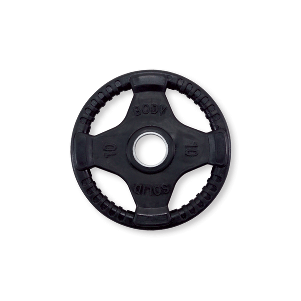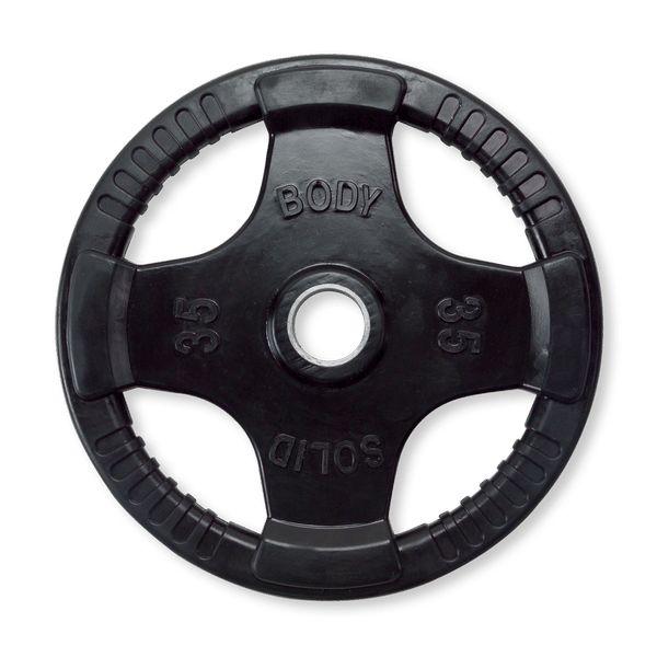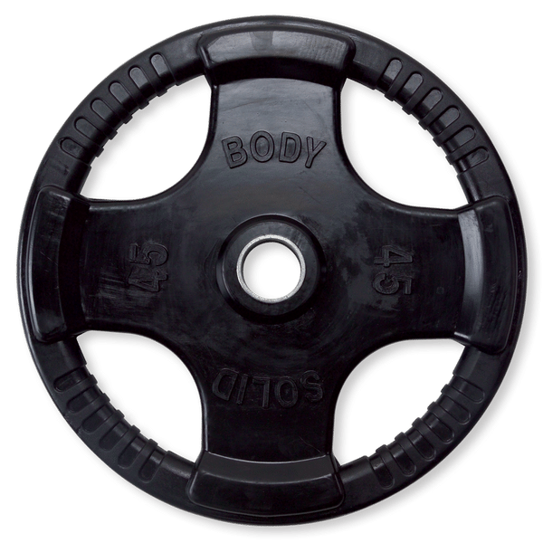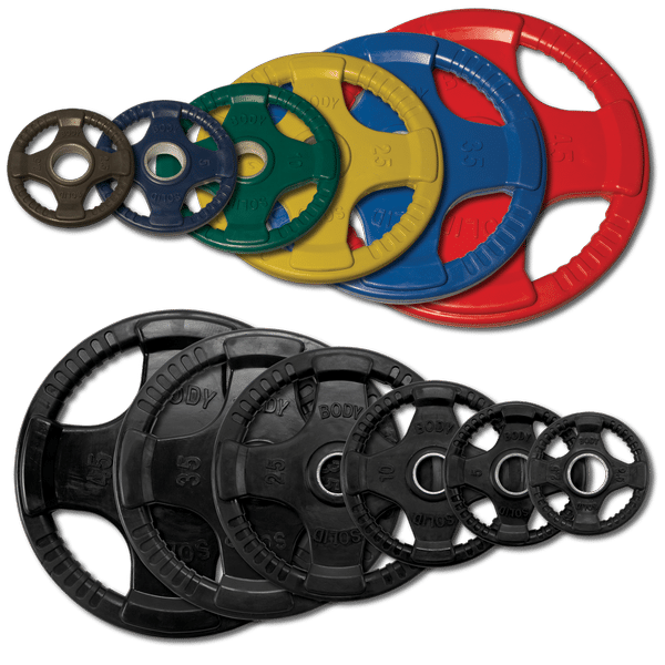 Designed using state-of-the art technology, Body-Solid Rubber Grip Olympic Plates surpasses all others in quality, accuracy, reliability and price. Quad-grip design guarantees safer and easier performance than any other plate on the market. Encased in durable, heavy-duty rubber to prevent scuffing or damage to equipment, walls or floors. Impact-resistant, these Olympic Plates will not split, crack or peel. They are also impervious to rusting, chipping, flaking or losing their color. And the integrated metal sleeve provides a smooth, secure fit onto any Olympic bar. Heavy lifting has never been easier or safer.