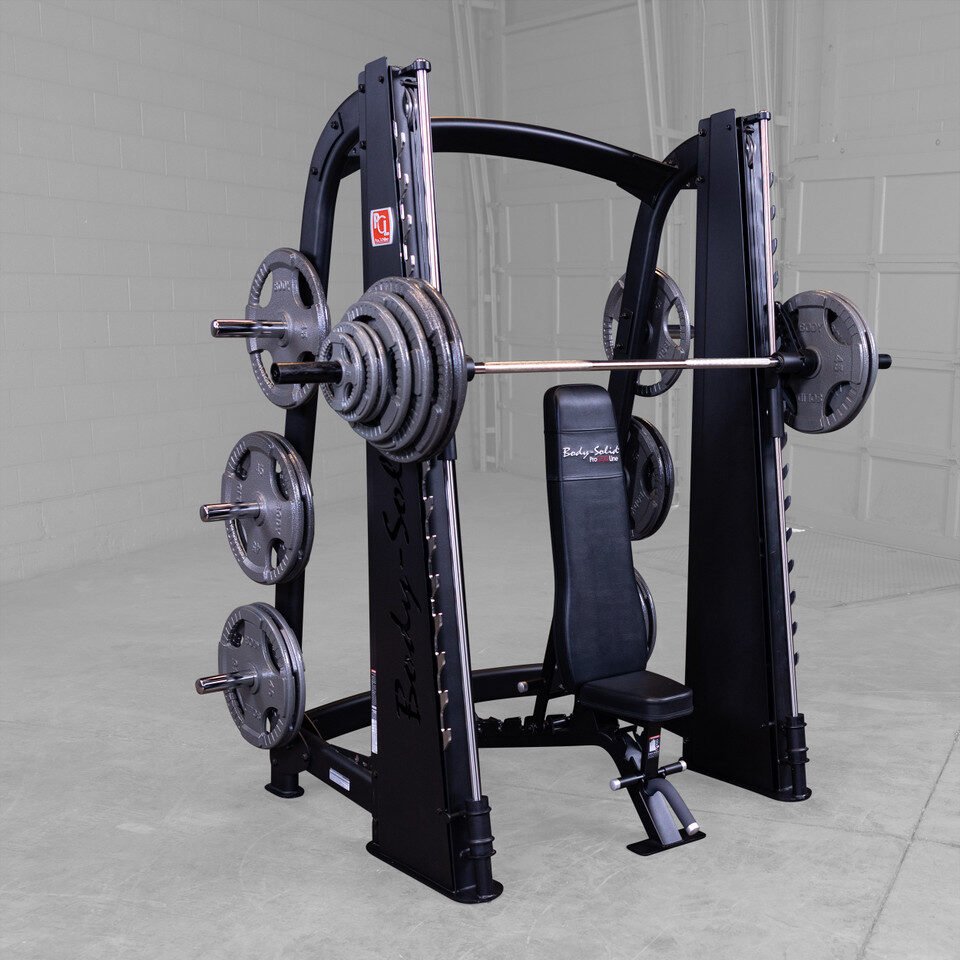 Counterbalanced to a comfortable 6 pounds, the SBC1000 allows any size user to start with an appropriate amount of resistance, then handles up to 1,000 pounds with ease. Its reverse pitch and silky smooth vertical carriage ensure freedom of biomechanically correct movement as you move safely and efficiently through routines that can include bench press, chest press, military press, squats, lunges, curls, shoulder shrugs and dozens of other muscle-massing exercises.