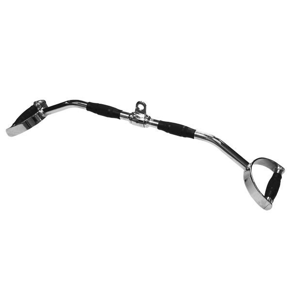 Scientifically angled to allow a deeper stretch for better lat development. Smooth, fluid center swivel keeps your form on track. Extra set of knurl-textured rubber grips allow bar to be used for triceps and bicep workouts. 38” width for physiologically correct lat isolation movement. Solid steel , 38”L, 13 lbs.